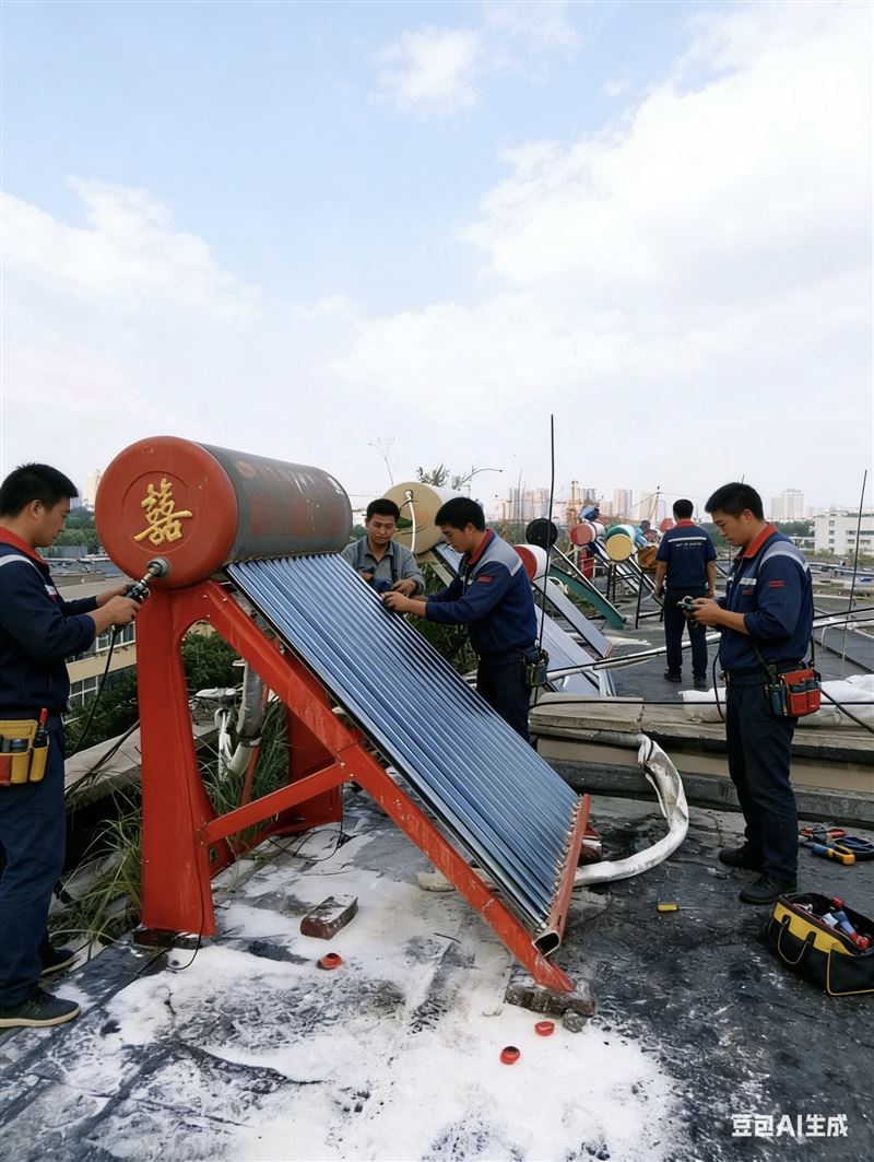 处理室外管子破裂,换各种型号真空管,换上下水管,换室外保温管,解决太阳能不上水,水桶漏水,架子歪斜等情况,加装电加热,加装化冻带,加装全自动智能仪表,维修仪表不显示温度和水位,不化冻不加热等,维修混水阀,换装恒温阀,更换浮球阀,室外保温管维护,确保一年四季照常用上热水。